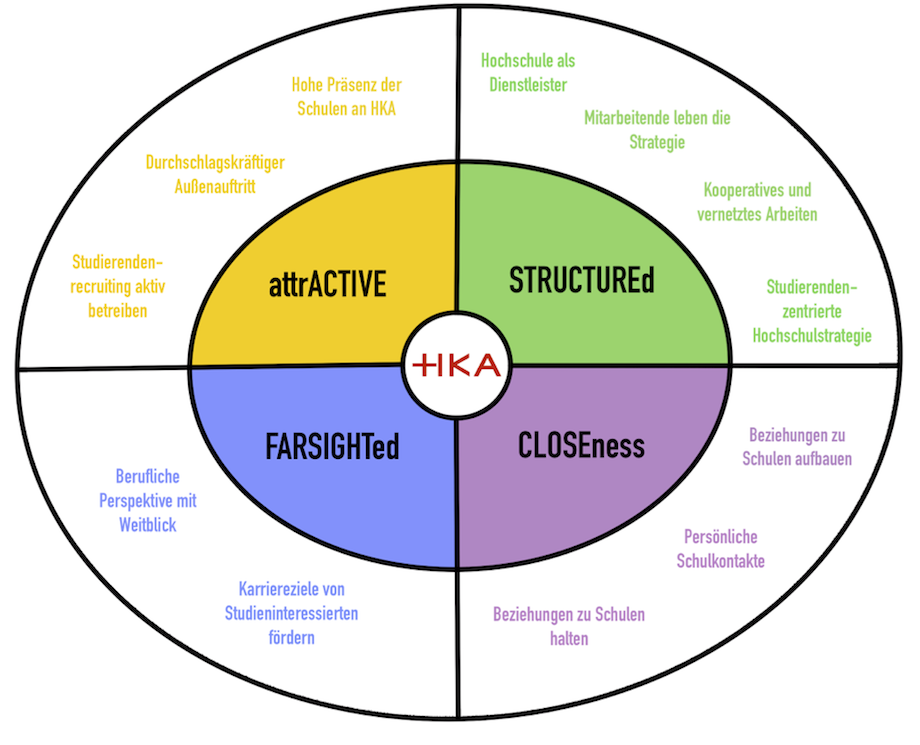 Die Hochschule Karlsruhe (HKA) verzeichnete in den letzten Jahren einen Rückgang der Studierendenzahlen, insbesondere bei den Erstsemestern. Ziel meiner Bachelorarbeit war es, die Ursachen für diesen Rückgang zu ergründen und ein ganzheitliches Konzept zu entwickeln, um die HKA für Studieninteressierte wieder attraktiver zu machen. Um die Ursachen für den Rückgang der Studierendenzahlen zu ermitteln, wurden verschiedene Forschungsmethoden eingesetzt: